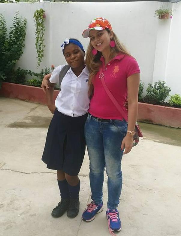 Maria Alejandra Salazar with the girl she sponsors in Cartagena, Colombia